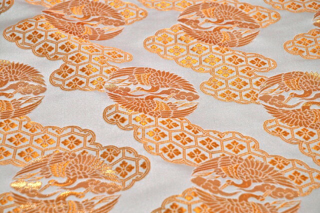 金襴 生地 布 はぎれ★雲取り亀甲に向い鶴の丸 白★手芸,インテリア,人形【和柄 和布 和生地 和風 和柄生地】