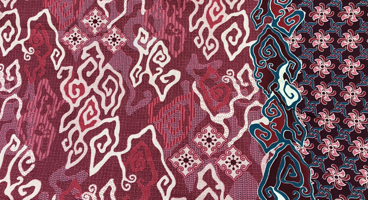 サイズ 縦:約115cm 横:1m単位の測り売り 色 ピンク・クリーム赤紫・青緑 商品説明 バリ島直輸入のバティックプリント生地です。