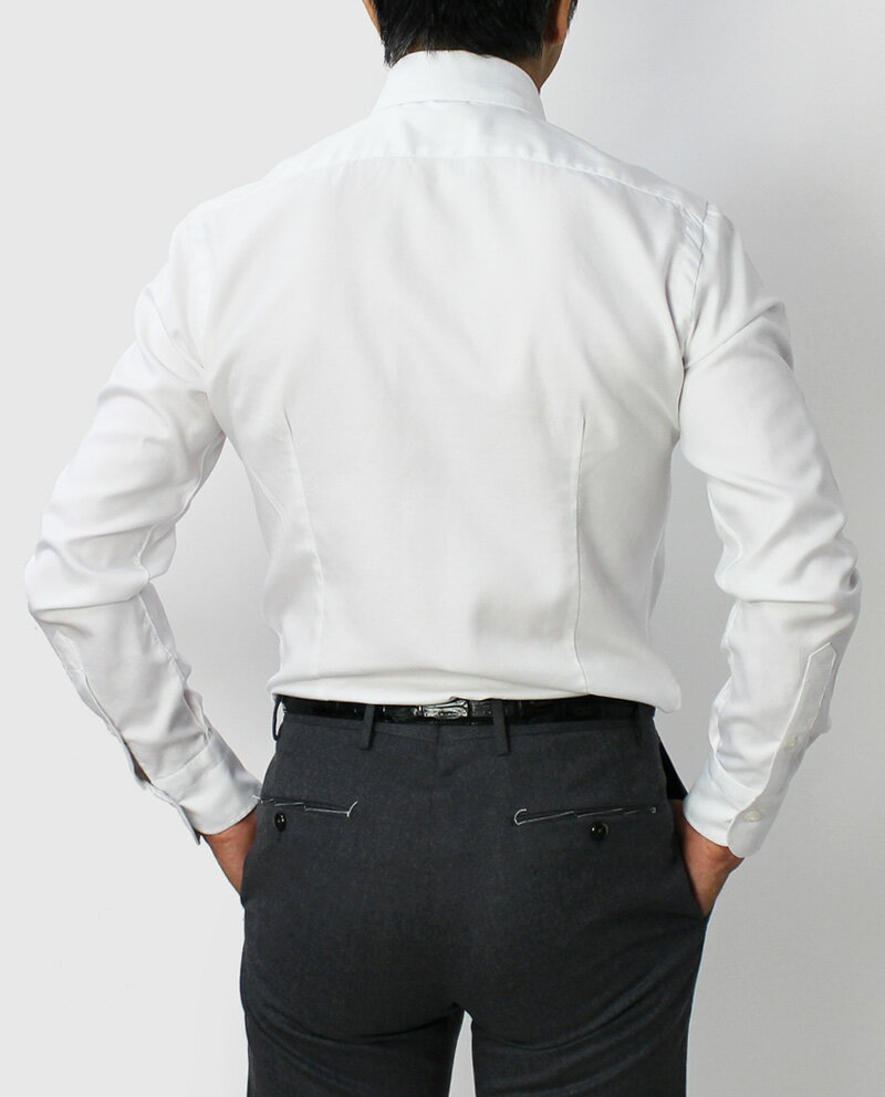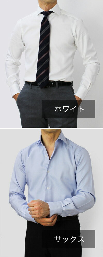 襟型もノータイでもネクタイ着用でもバランスの良いセミワイドのモデルです。