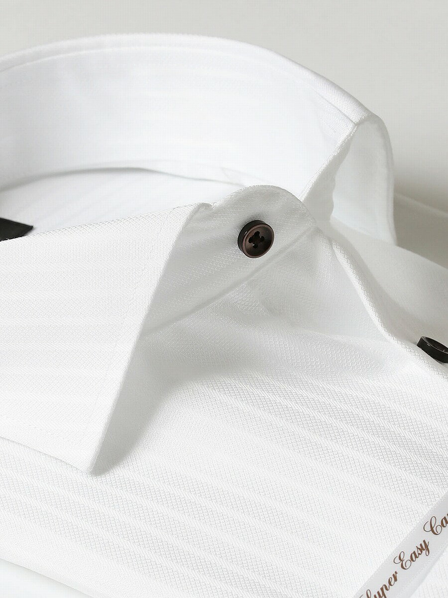清潔感のある白を基調としたドビー織りで、ビジネスシーンをスタイリッシュに演出。