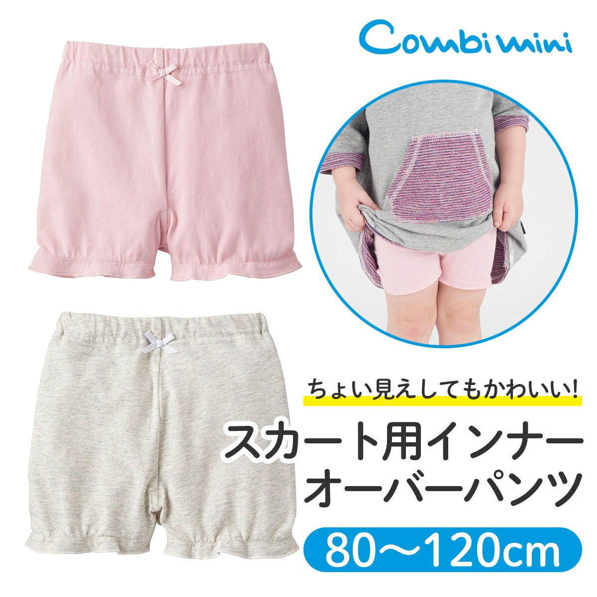 オーバーパンツ | グレー ピンク 80cm 90cm 100cm 110cm 120cm カットソー ショート インナー ボトムス 女の子 おしゃれ 可愛い ベビー キッズ 子供服 コンビミニ