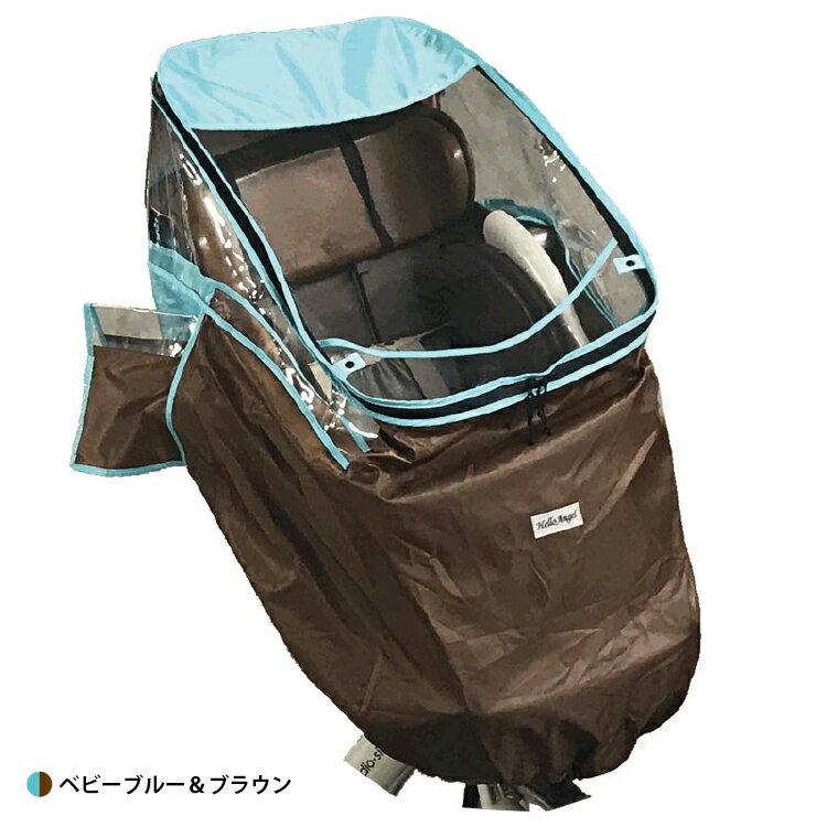 <商品名>ハローエンジェルヘッドレスト付前乗せ幼児座席用風防レインカバー <品質表示>ポリエステル、透明部分PVC <お手入れ方法>汚れは水、又はぬるま湯で洗い流してください。