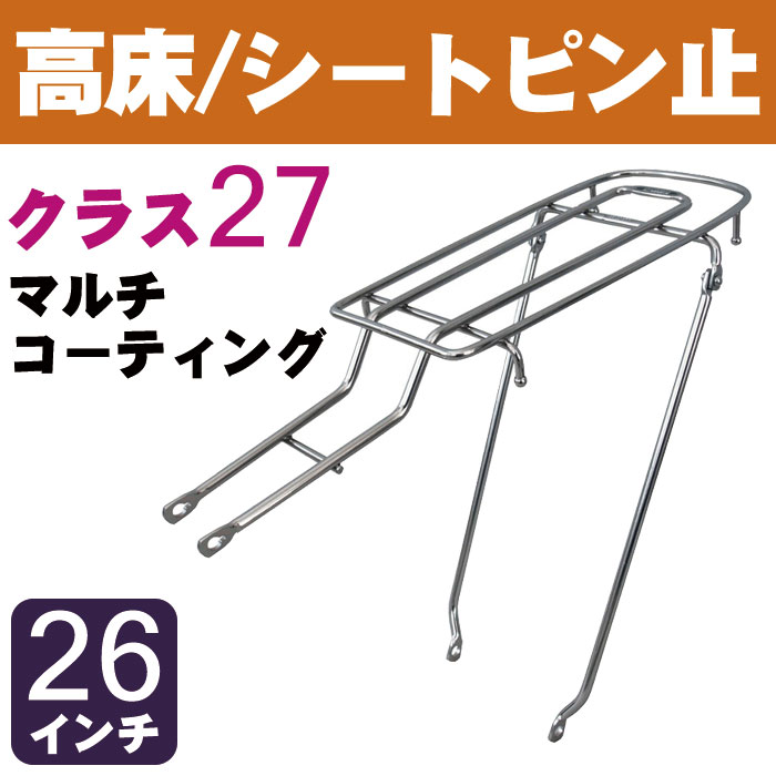 ⇒リアキャリアの選び方【商品名】リアキャリア 高床タイプ シートピン止めタイプ クラス27【商品分類】自転車用品、サイクル用品、自転車グッズ、サイクルグッズ、自転車用キャリア、リアキャリア、リヤキャリア、荷台【品番】RC-27H 26 SE【カラー・素材】マルチコーティング【対応インチ】26インチ(26型)【対応車種】一般車(シティサイクル・ママチャリ)用となります。